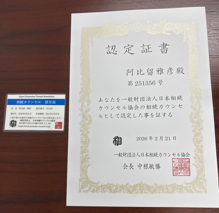 一般財団法人 日本相続カウンセル協会より「相続カウンセラー」として認定されました。